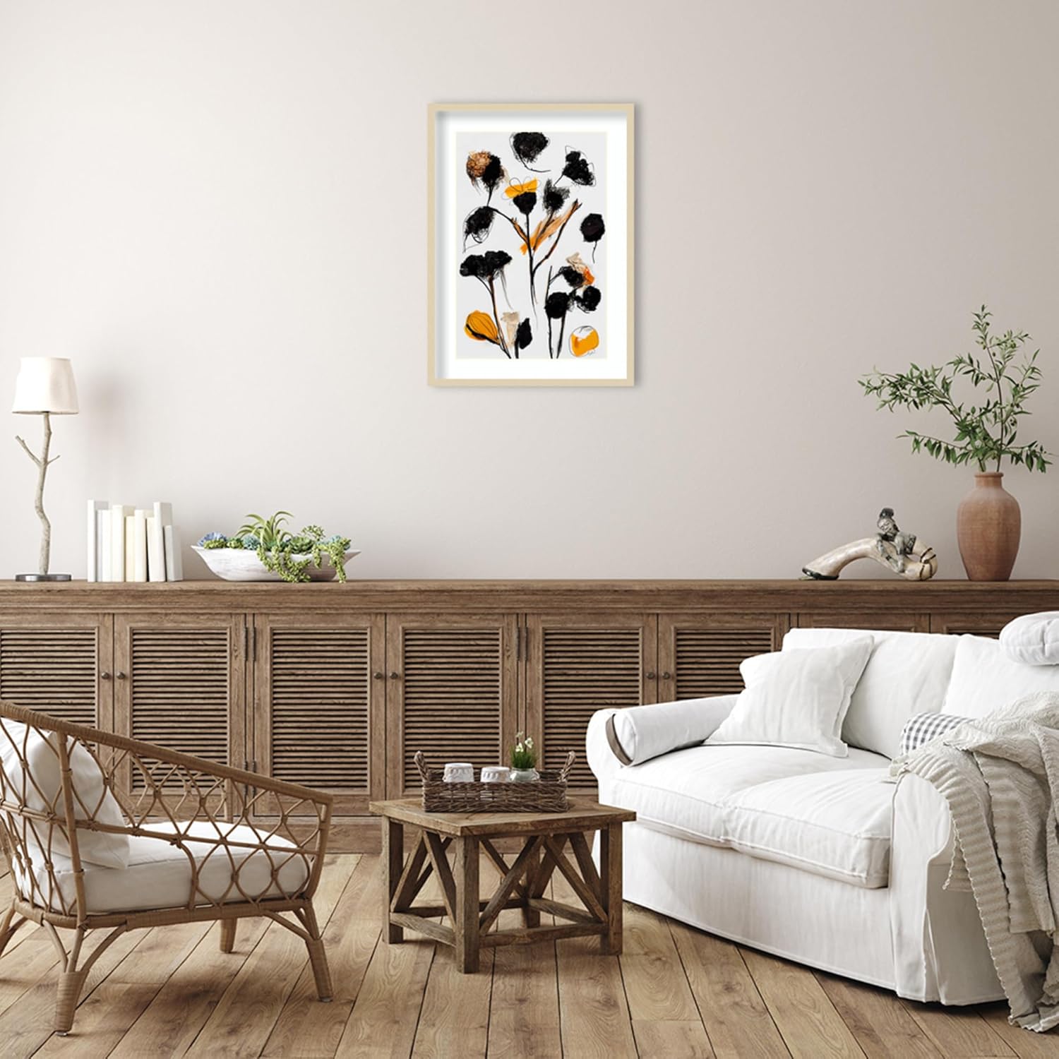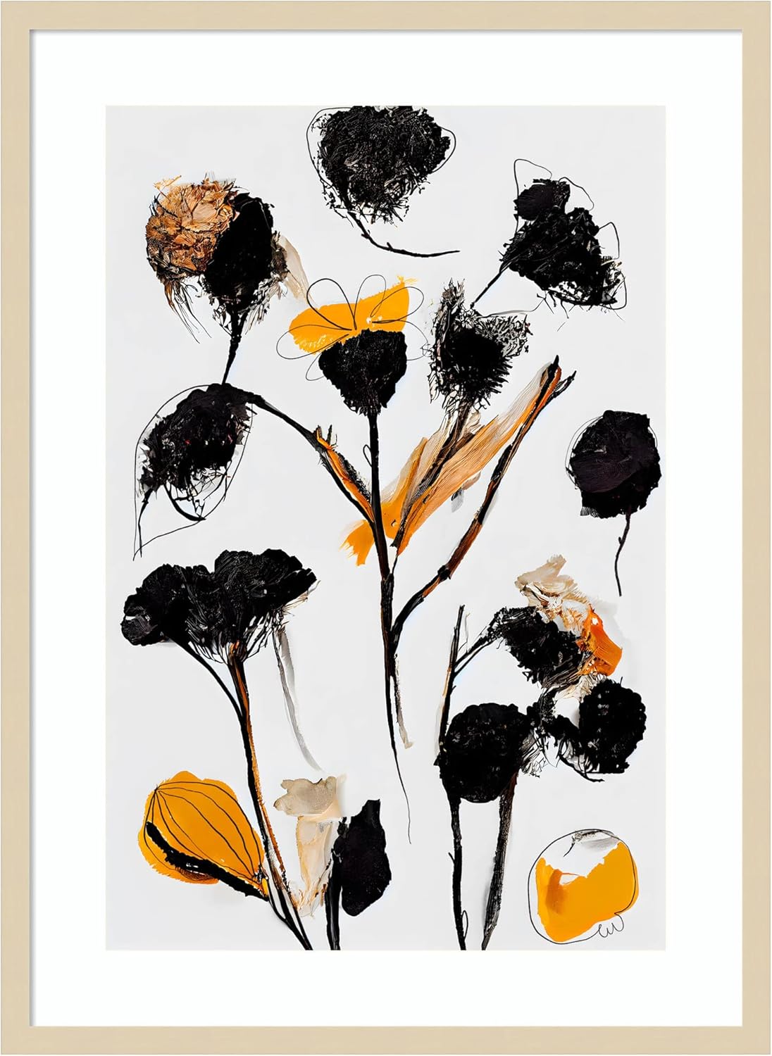 This stunning abstract art print draws inspiration from the natural world, featuring a bold black and orange floral design that adds a touch of sophistication and creativity to your interior. The mix of textures and colors creates a dynamic visual impact, perfect for enhancing the character of any room.